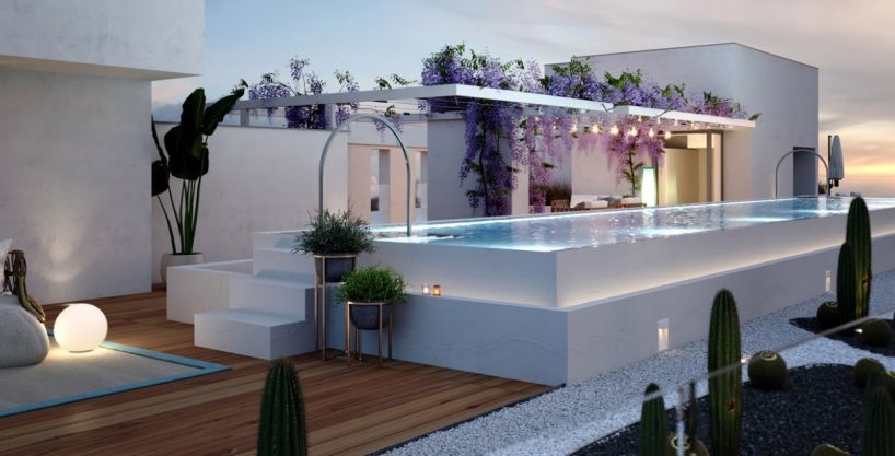 Residential includes a community garage, storage rooms, gym and exclusive outdoor infinity pool located on the roof of the building. From the heights you will enjoy a pleasant bath while contemplating incredible views over the sea and the Alicante skyline.
